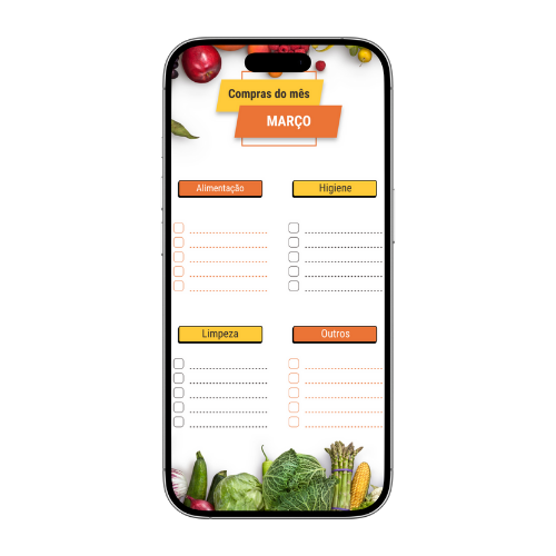 ¡Organiza tus compras de supermercado de forma más cómoda! Una lista lista, dividida por grupos de alimentos y semana, con los alimentos más usados en el calendario: todo para que tengas lo que necesitas en el momento justo, sin complicaciones.